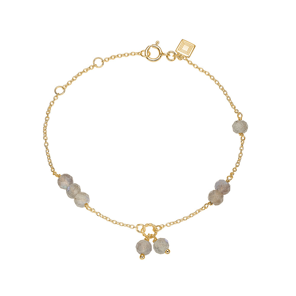 Armbåndet er i forgyldt sterling sølv med facetslebet labradorit.