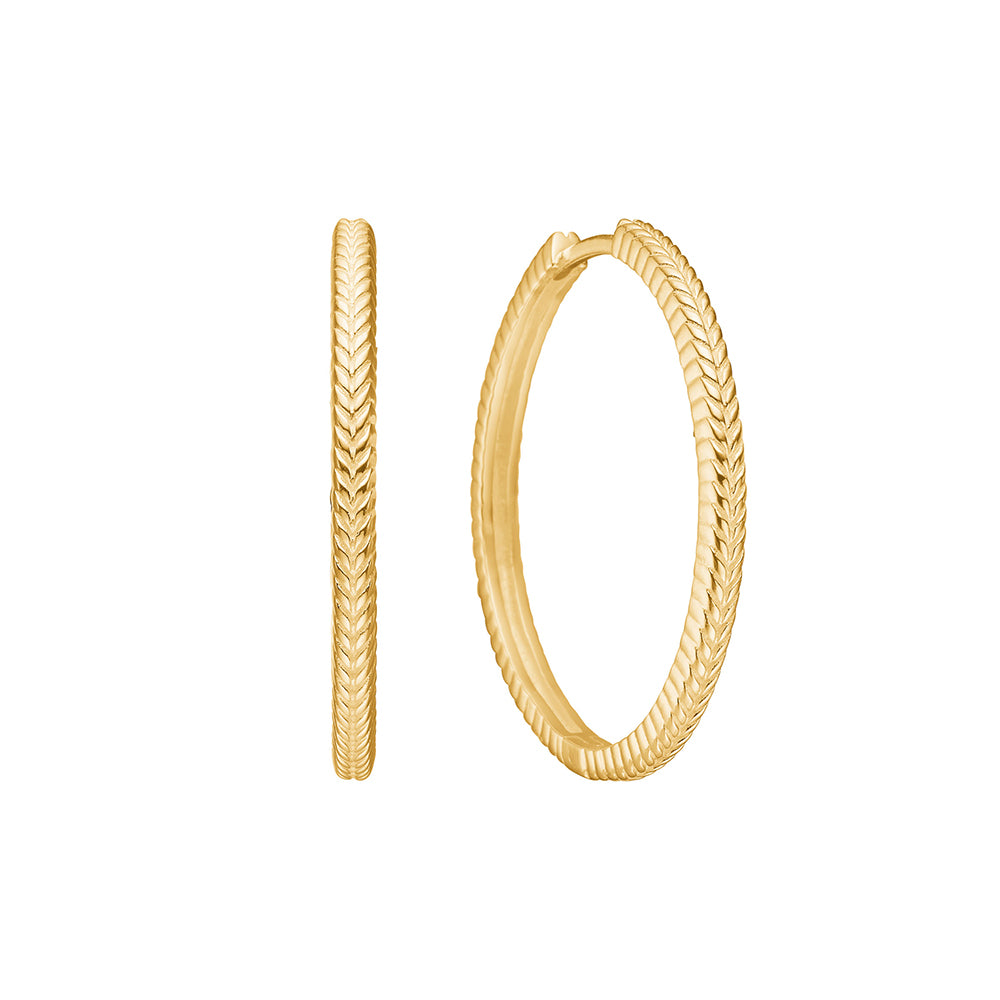 Øreringene tilhører Fishbone kollektionen, der er dekoreret med flettede signaturdetaljer.