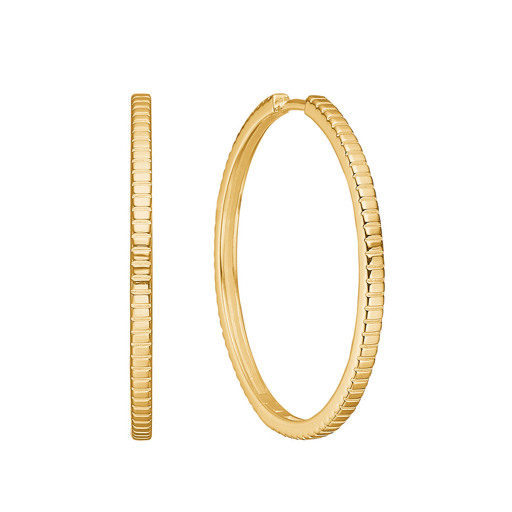 Øreringene er fra Pinstripe kollektionen der består af smykker dekoreret med de fine Carré nålestriber.