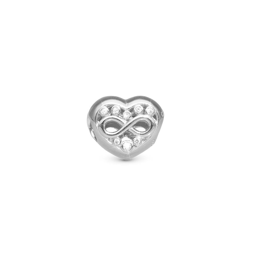 Funklende 11 mm hjerte med Eternity-symbol og 8 zirkoniasten på begge sider