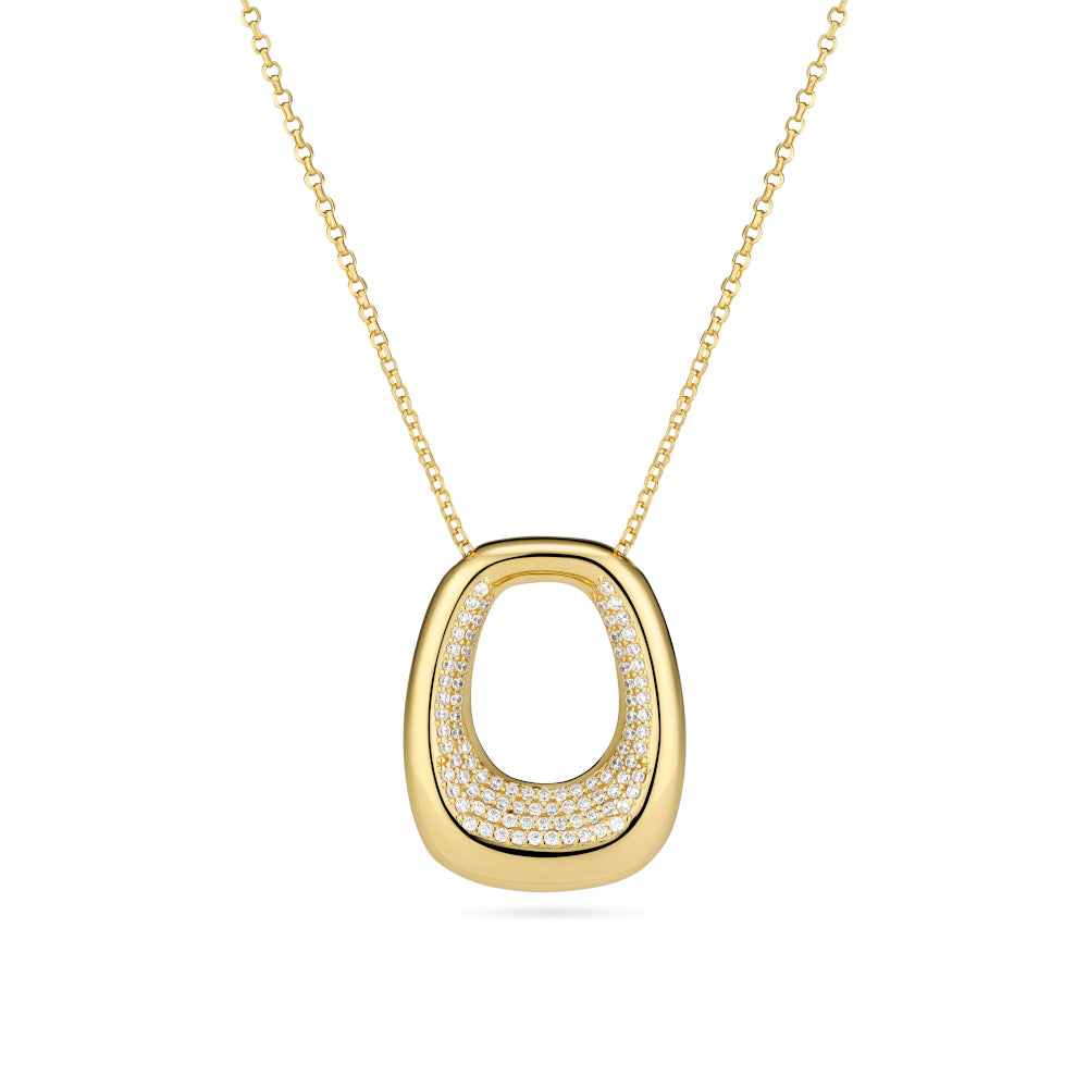 Halskæde i sølv eller forgyldt sølv med poleret overflade og facetslebne hvide zirkoner.