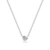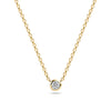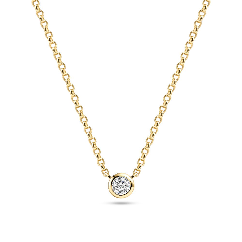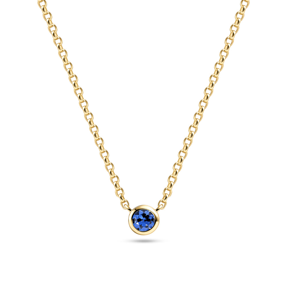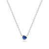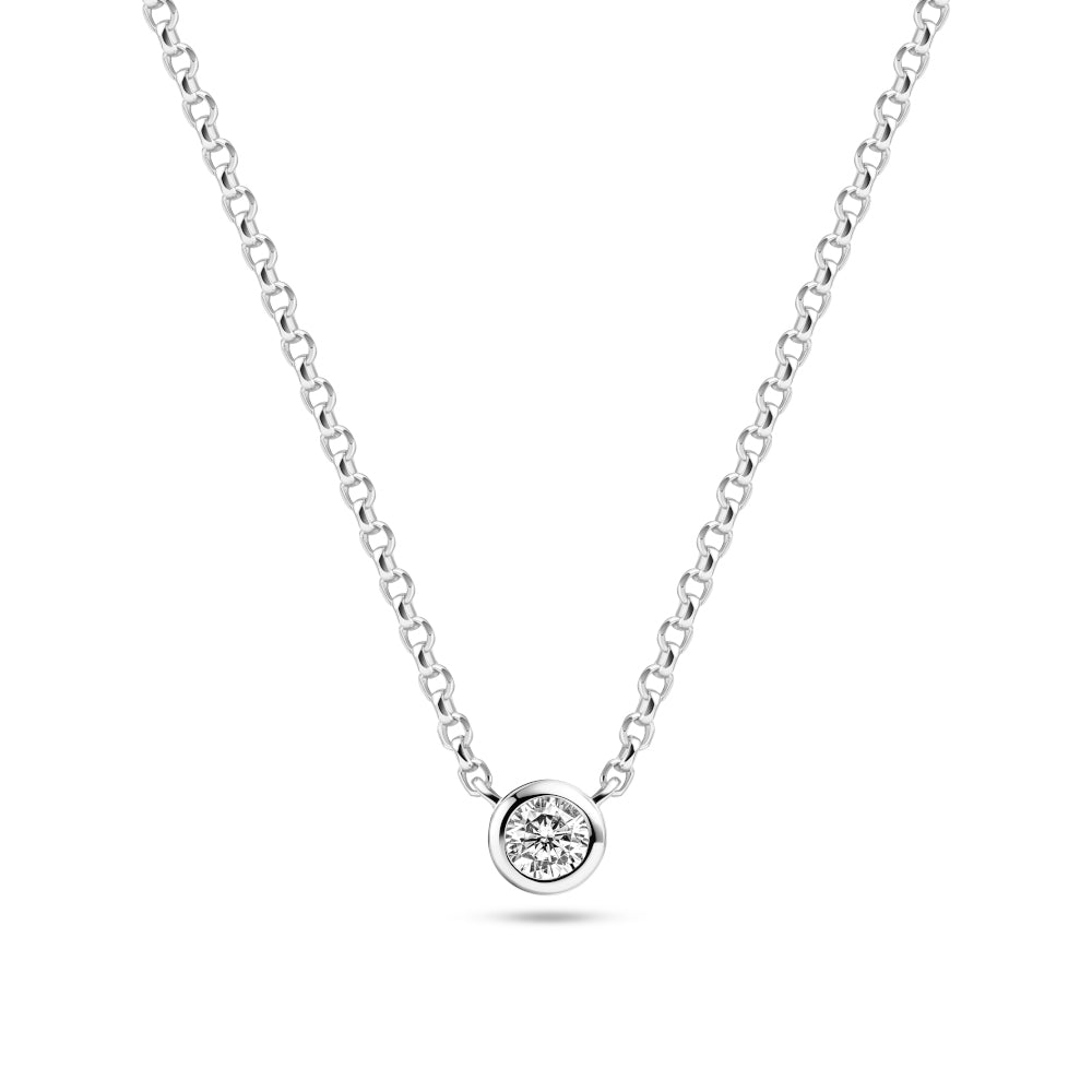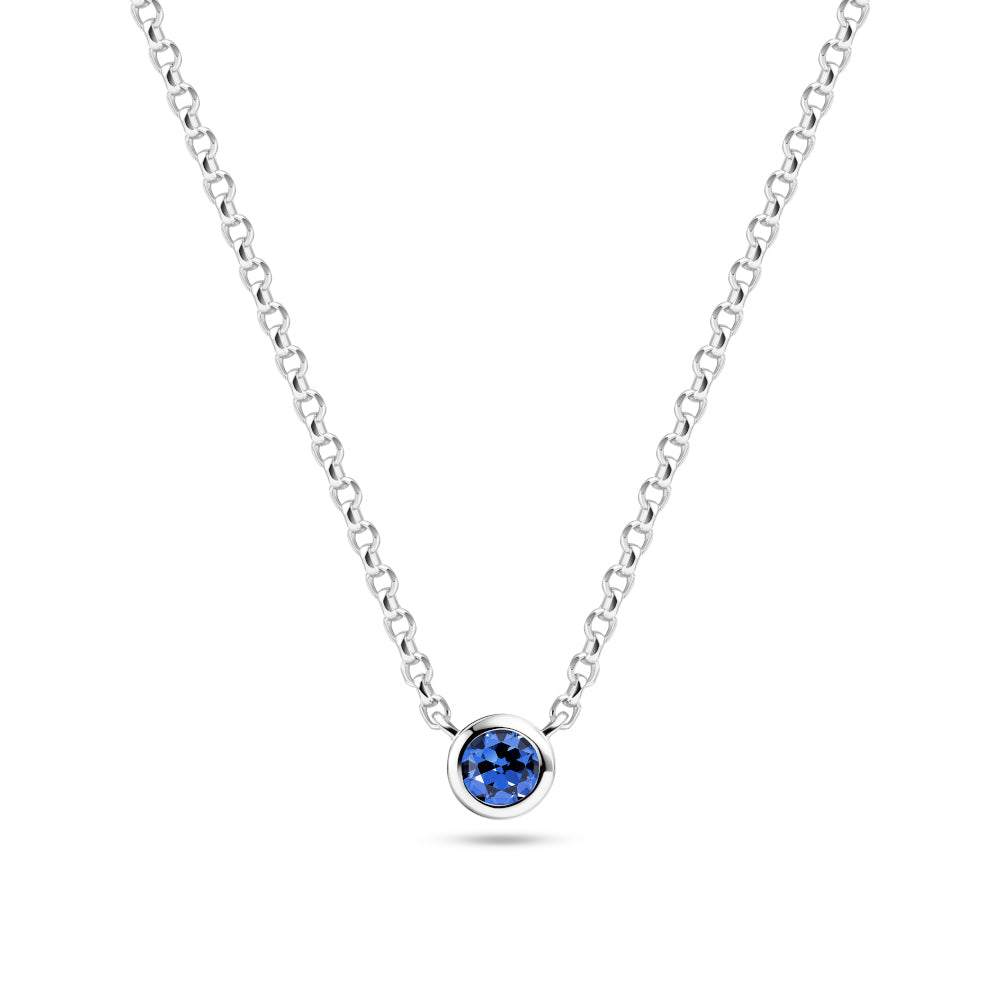 Halskæde i sølv eller forgyldt sølv med enten en blå eller en hvid håndsat, facetslebet zirkon.