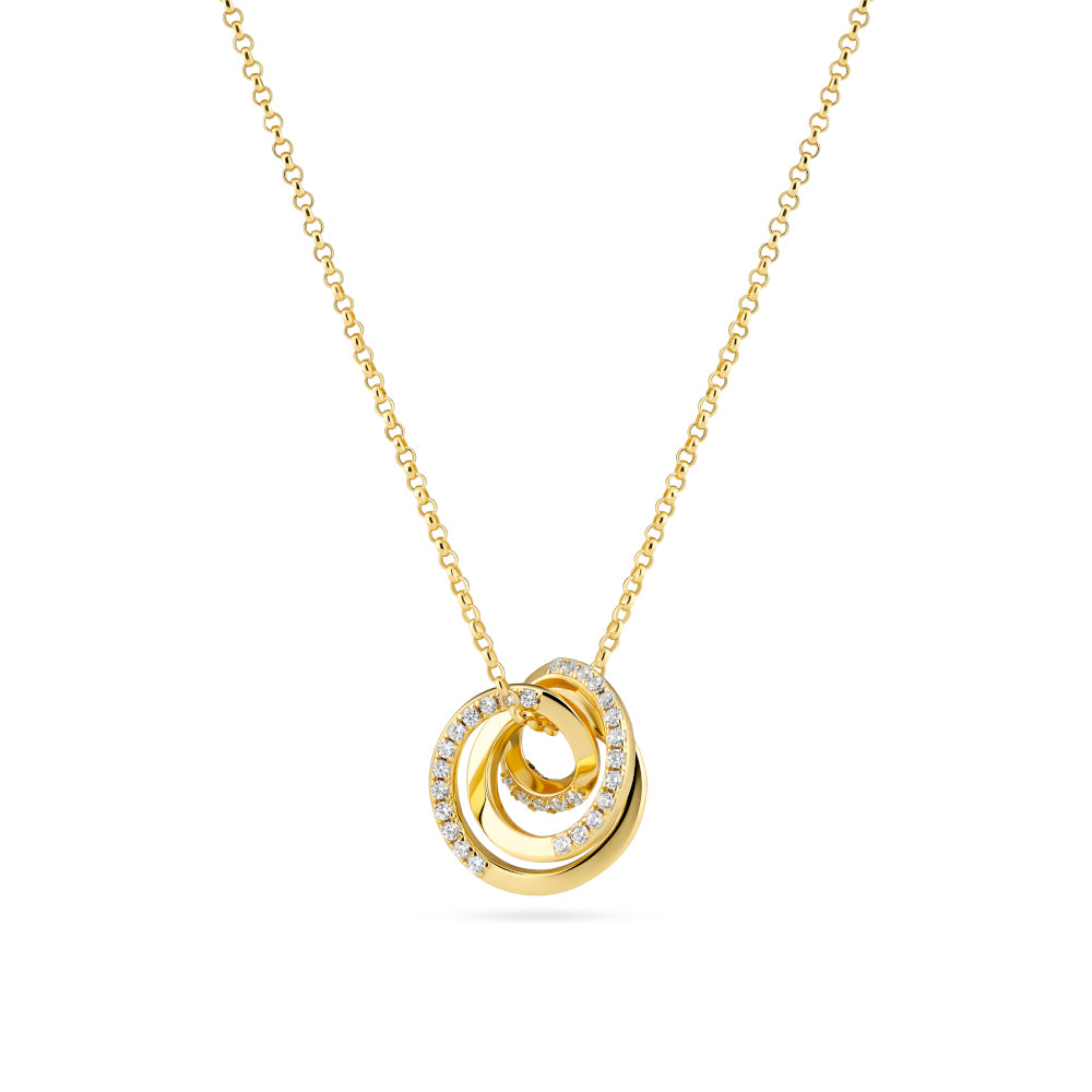 Halskæde i sølv eller forgyldt sølv med poleret overflade  og facetslebne hvide zirkoner.