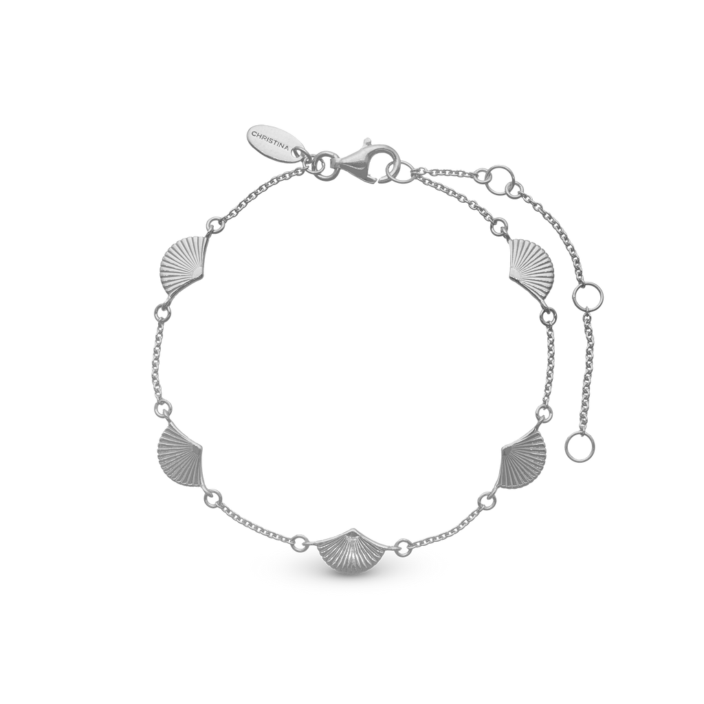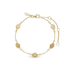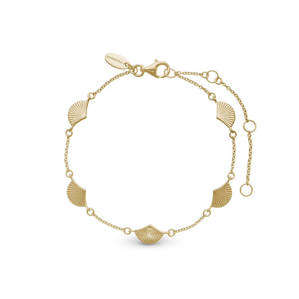 Et armbånd, der er inspireret af håndholdte vifter. Fem gyldne vifter hænger let på fine kæder og tilføjer et strejf af legende boheme til dit look.