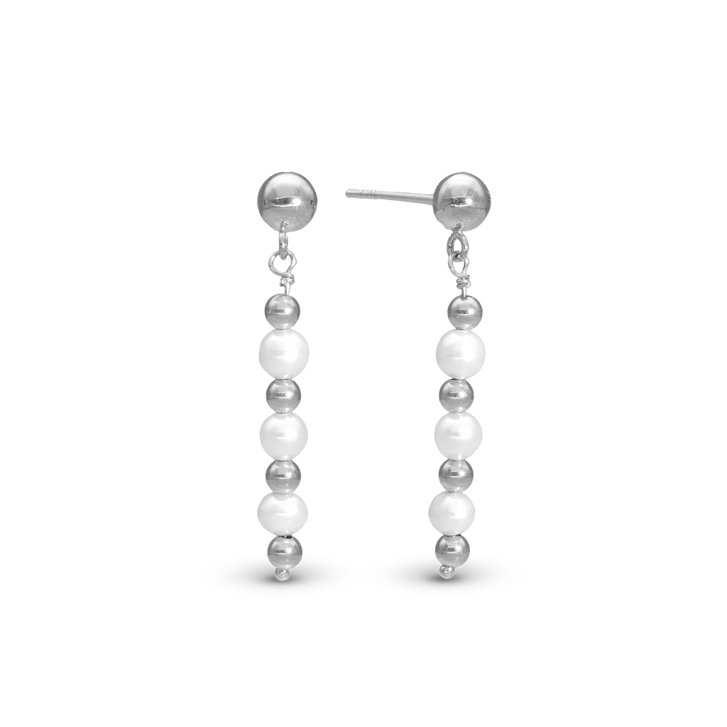 Ørehængerne i 925 sterling sølv med klassiske perler på en smuk række, der forener det klassiske med det nutidige. Rå elegance med en blød glød fra perlerne.