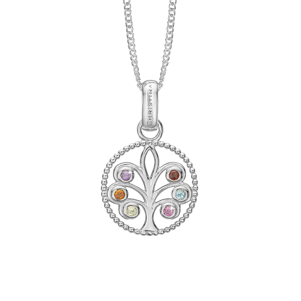 Vedhæng med flerfarvede sten fra Christina Watches. Findes i sølv og forgyldt sølv.