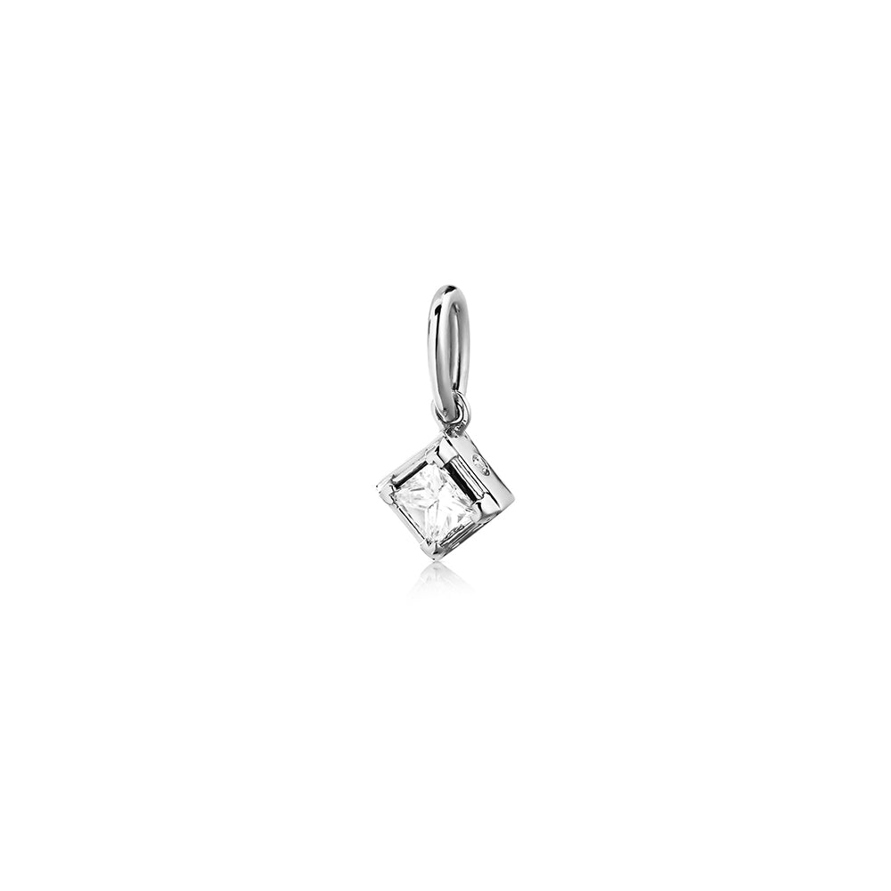 Dette elegante vedhæng er fremstillet i 18 KT hvidguld med 1 prinsessesleben diamant og 1 brillantsleben diamant, i alt 0,10 ct TW.VS