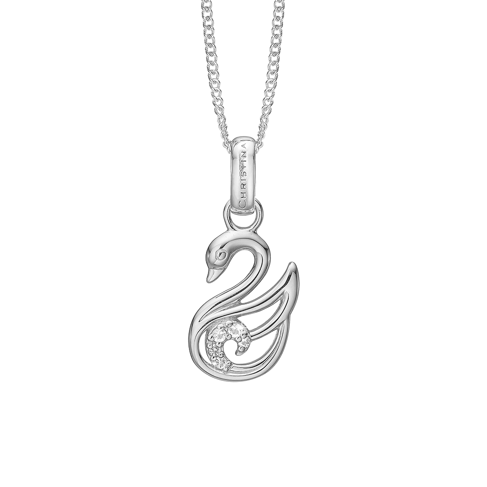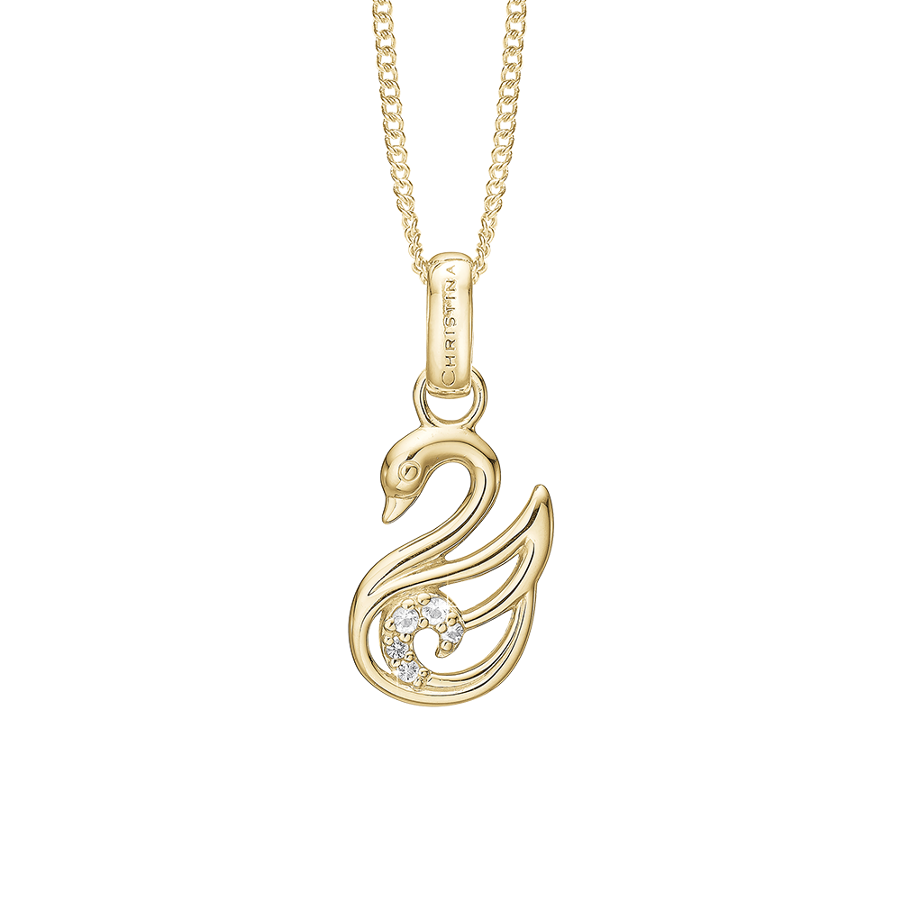 Vedhæng med svane og sten fra Christina Watches. Findes i sølv og forgyldt sølv.